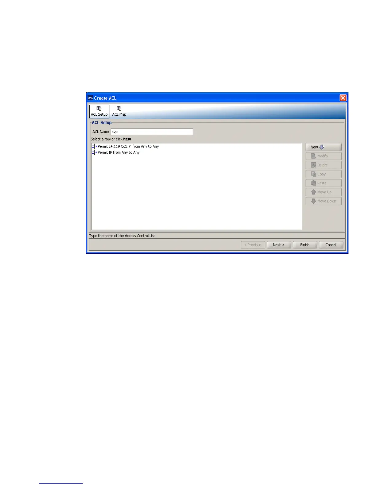 6 Click Finish to save the ACL.