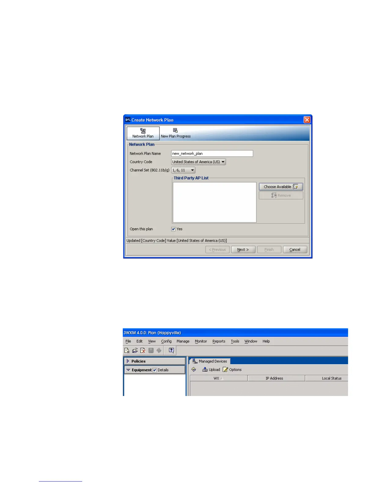 2 Enter a name for your network plan, select a Country Code, and click