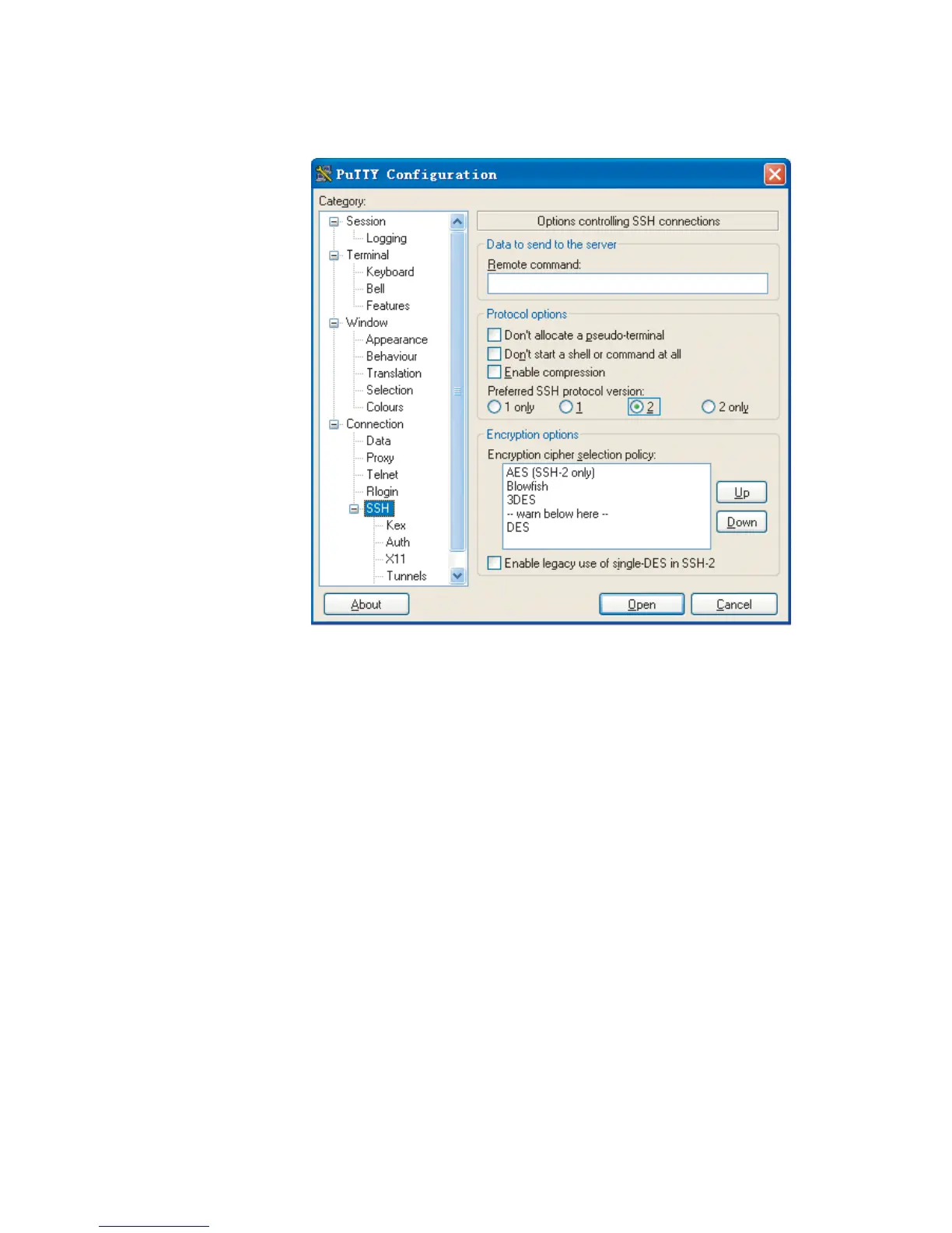 Under Protocol options, select 2 from Preferred SSH protocol version.