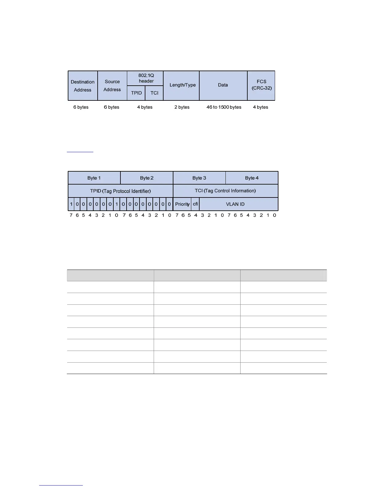 As shown in the figure above, the 4-byte 802.1Q tag header consists of the tag protocol identifier (TPID,