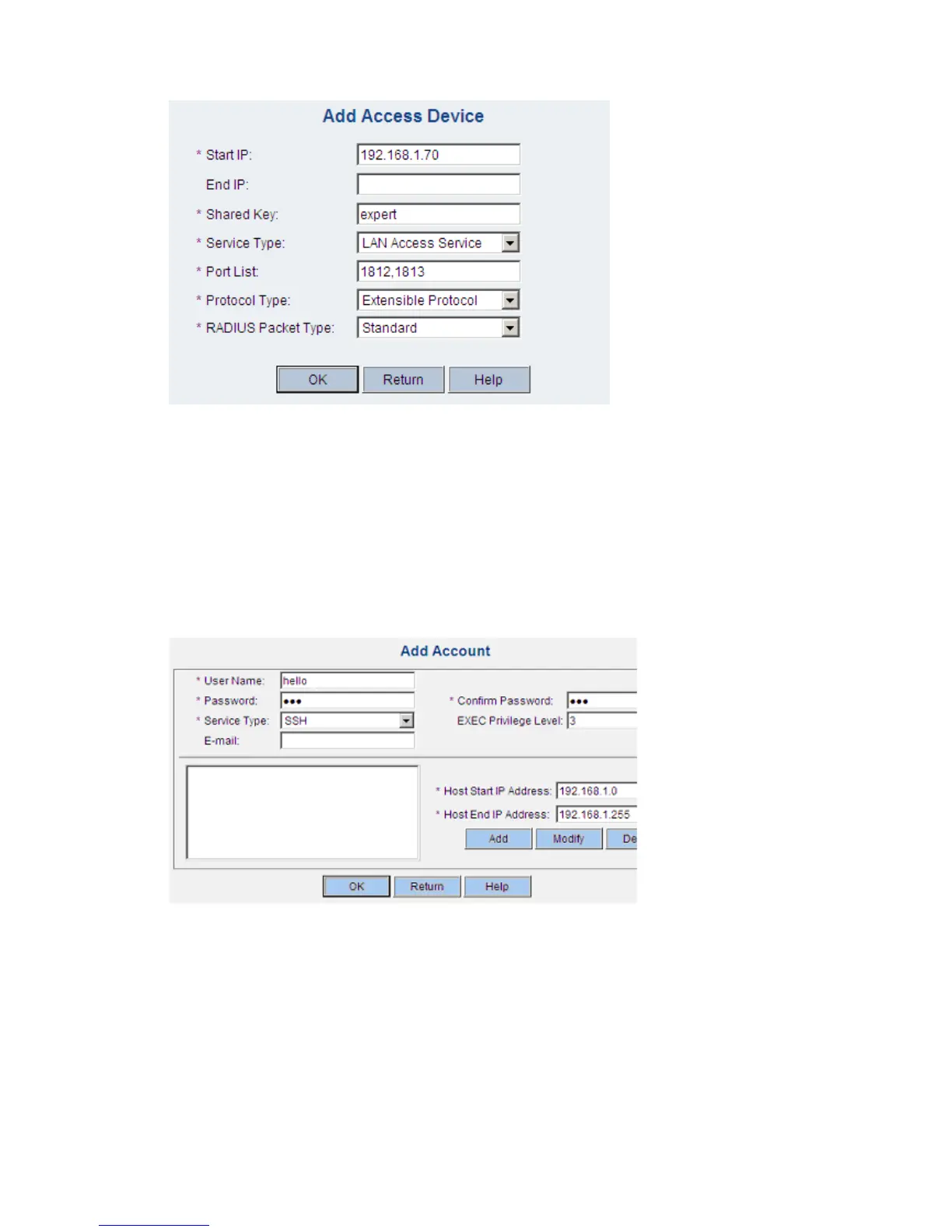 right pane, click Add to enter the Add Account page and perform the following configurations: