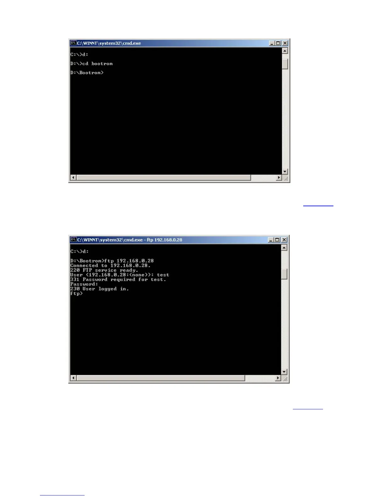 Step 6: Enter ftp 192.168.0.28 and enter the user name test, password pass, as shown in