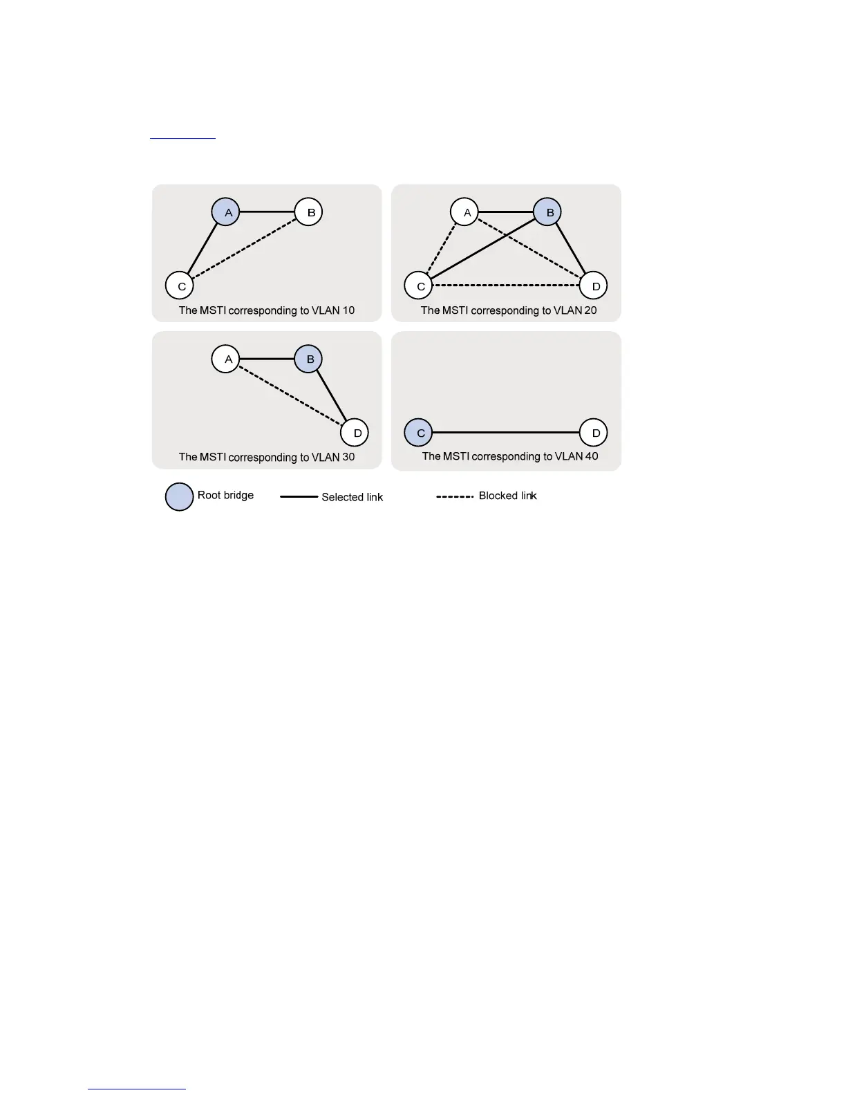 Based on the above information, you can draw the MSTI corresponding to each VLAN, as shown in