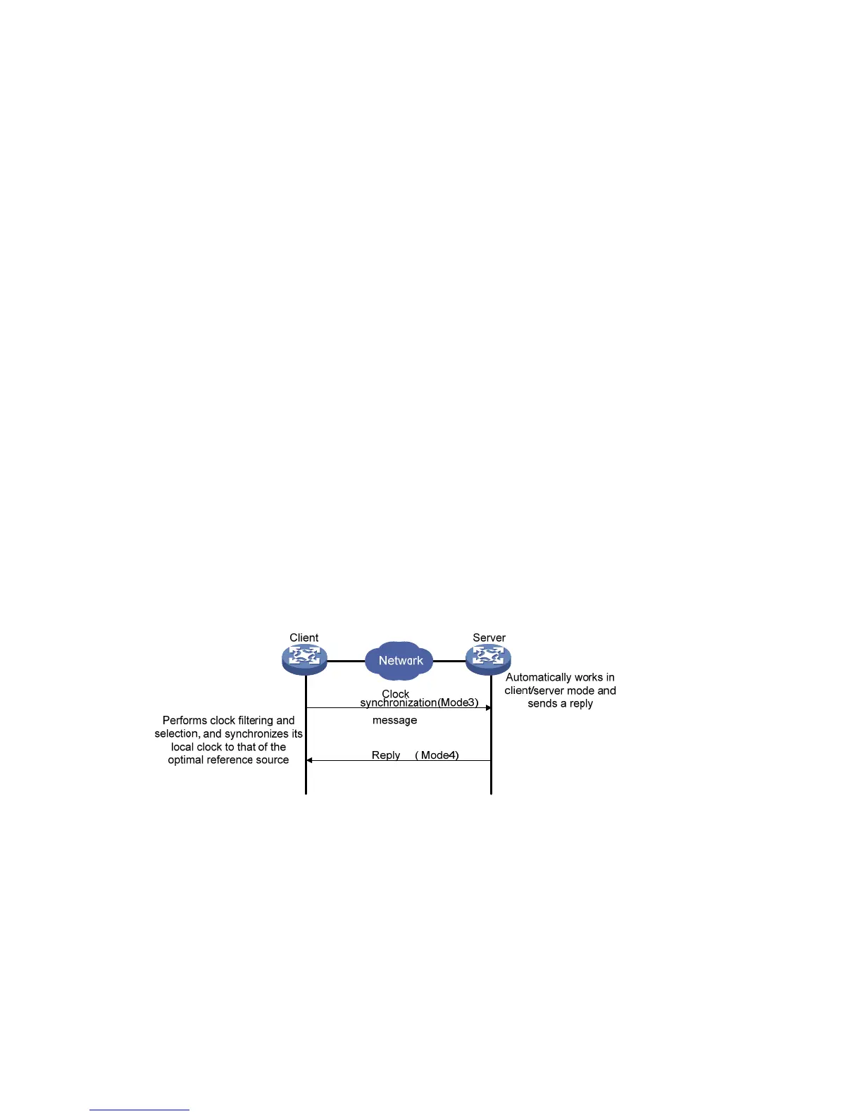 (server mode). Upon receiving the replies from the servers, the client performs clock filtering and