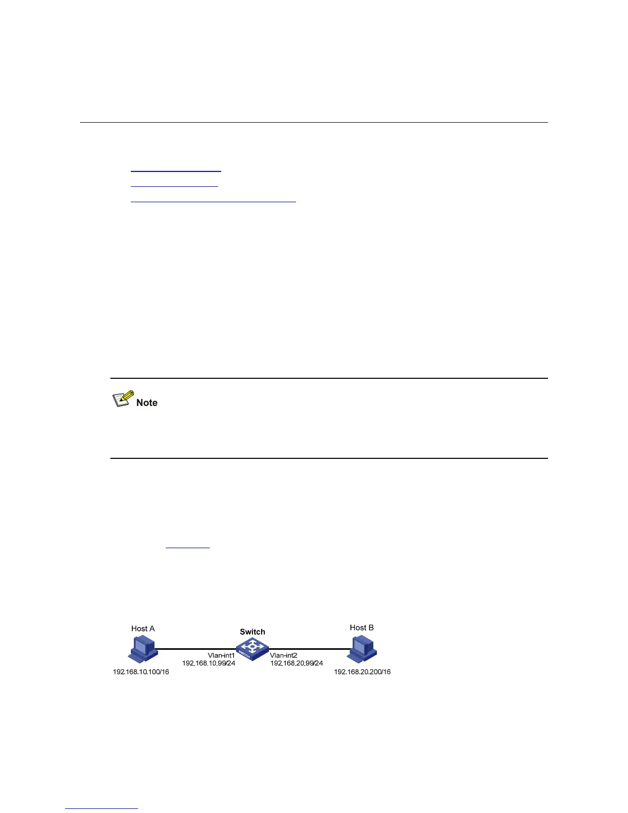 Figure 3-1, Switch connects to two subnets through VLAN-interface 1 and VLAN-interface