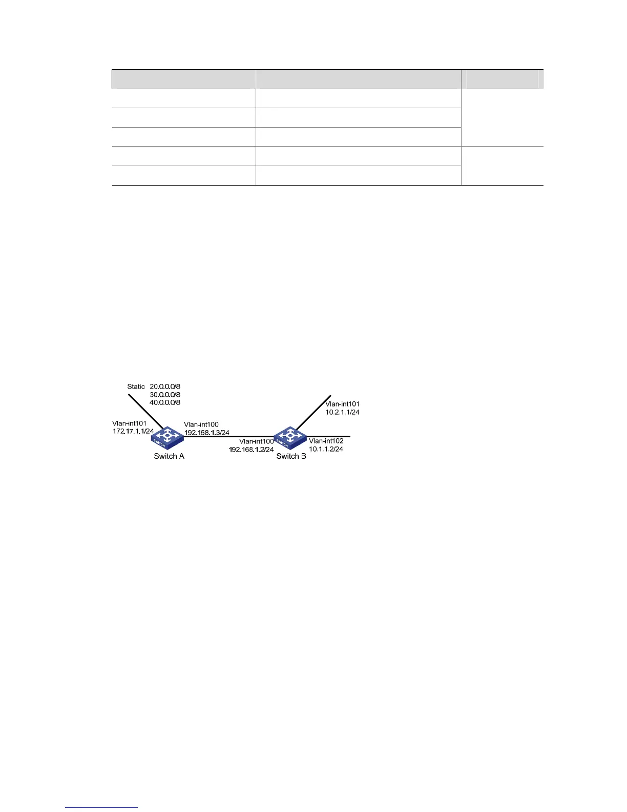 [SwitchA] ip route-static 40.0.0.0 255.0.0.0 172.17.1.2