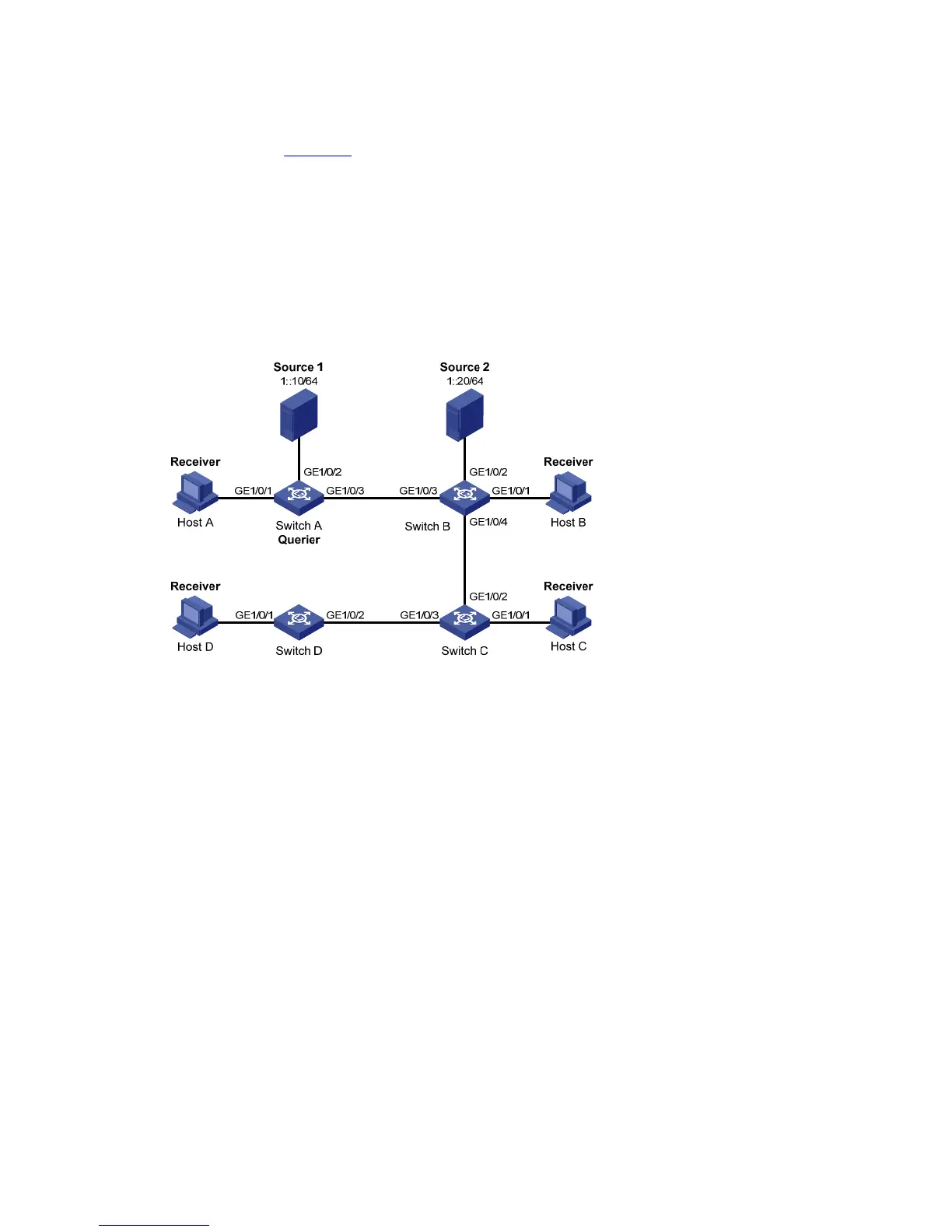 z As shown in Figure 4-5, in a Layer-2-only network environment, two multicast sources Source 1