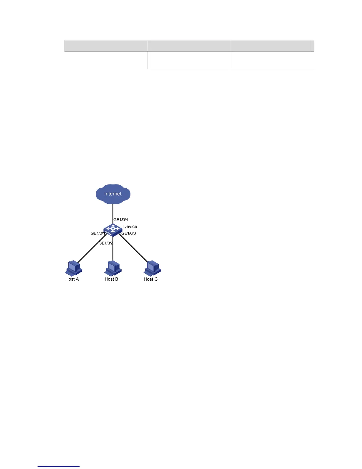 z Users Host A, Host B, and Host C are connected to GigabitEthernet 1/0/1, GigabitEthernet 1/0/2,
