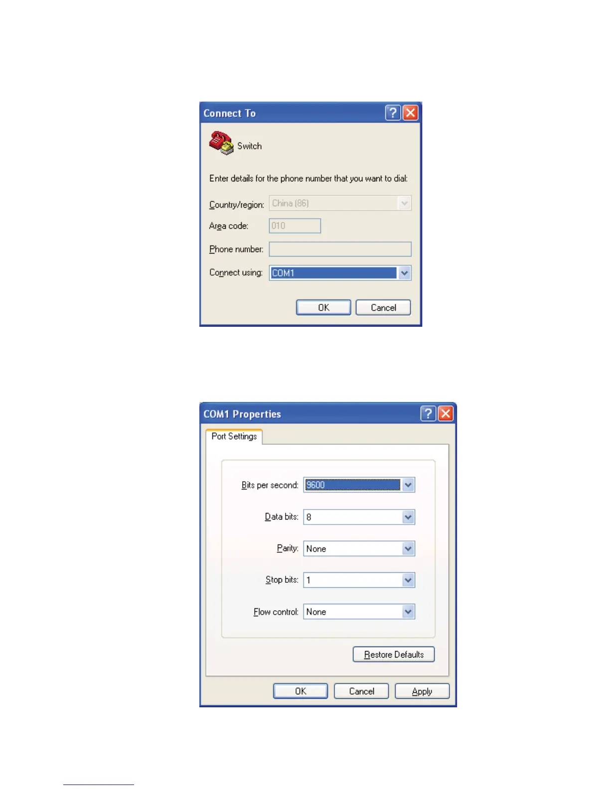 interface, set Bits per second to 9600, Data bits to 8, Parity to None, Stop bits