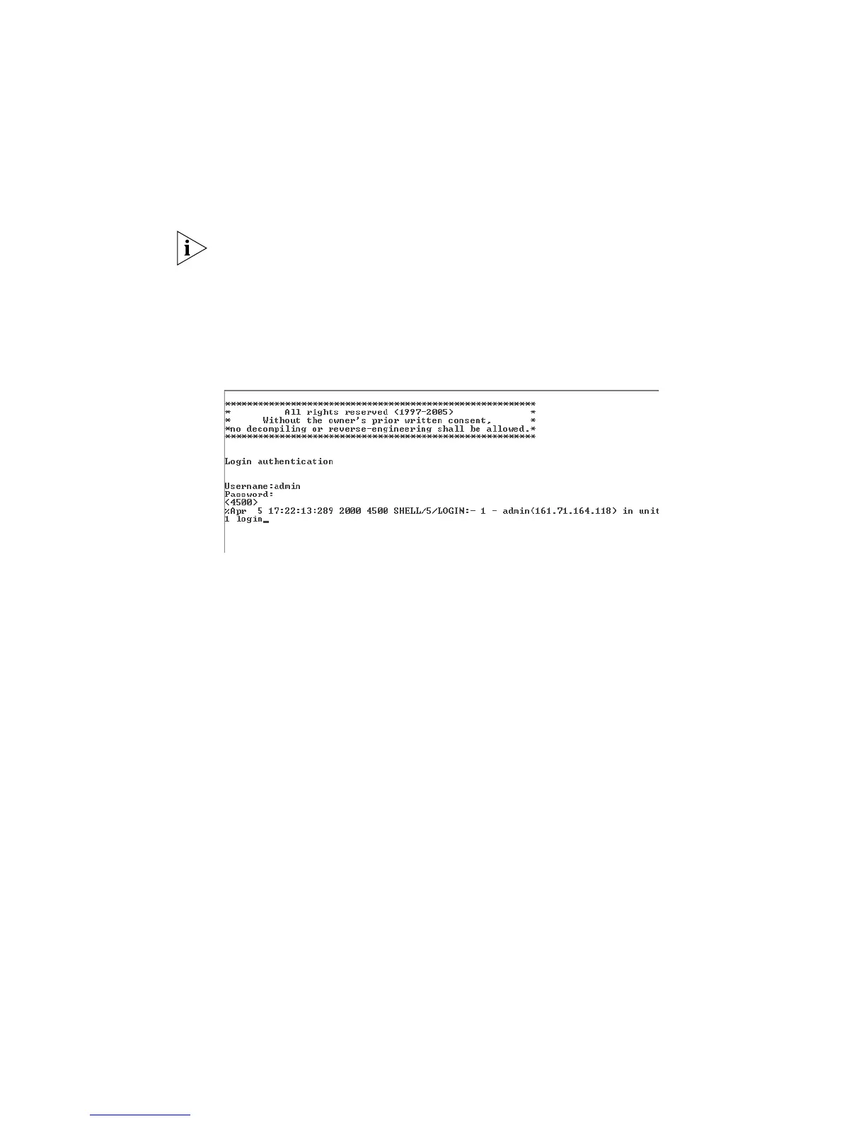 3 At the Username prompt, enter admin as your user name and press