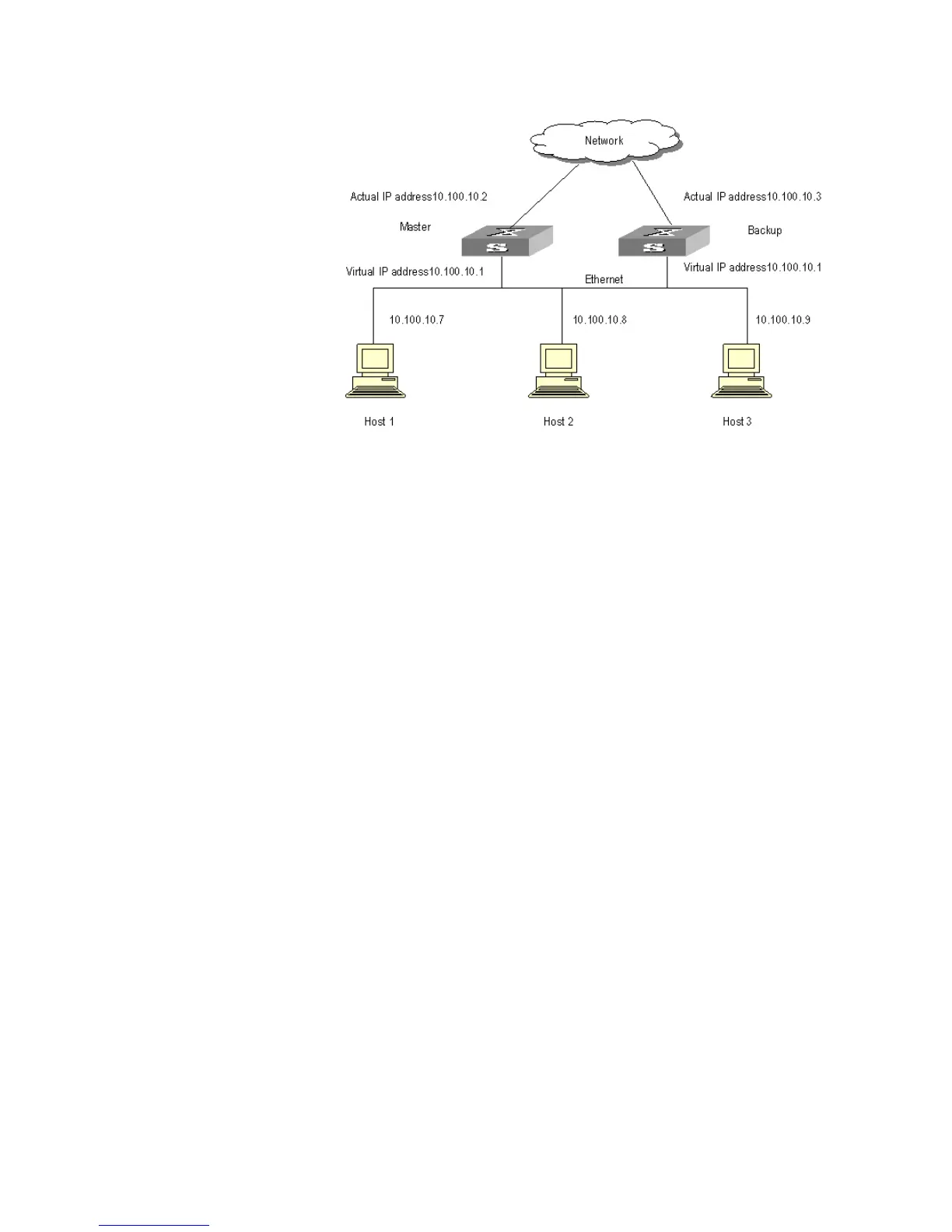 ■ Hosts in the LAN use the IP address of the virtual router (that is, 10.100.10.1) as