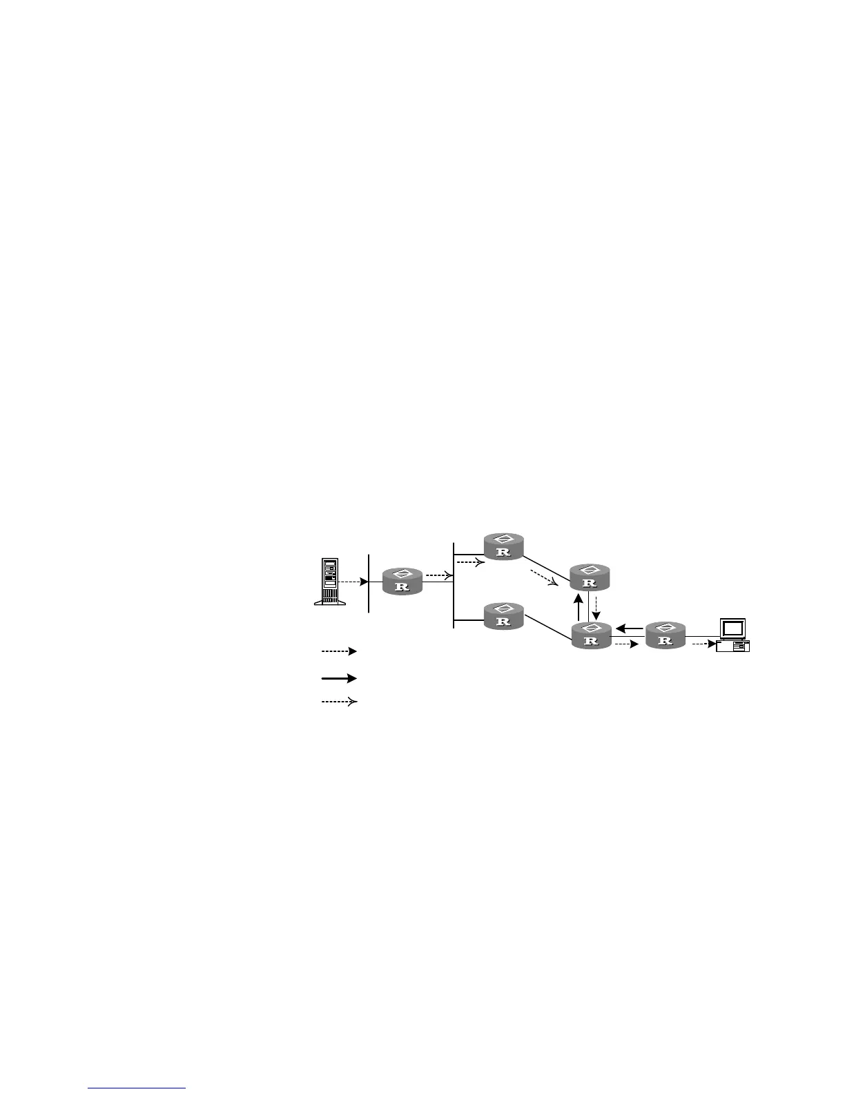 sent to leaf routers along the path built and then reach the hosts. In this way, an