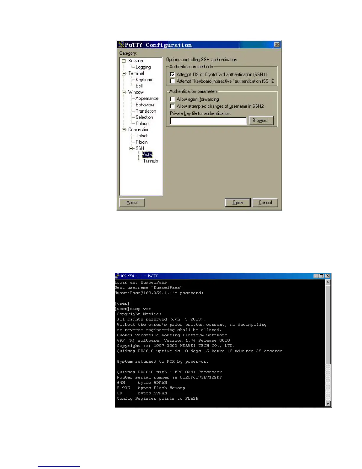 Click Open to enter SSH client interface. If it runs normally, you are prompted to enter