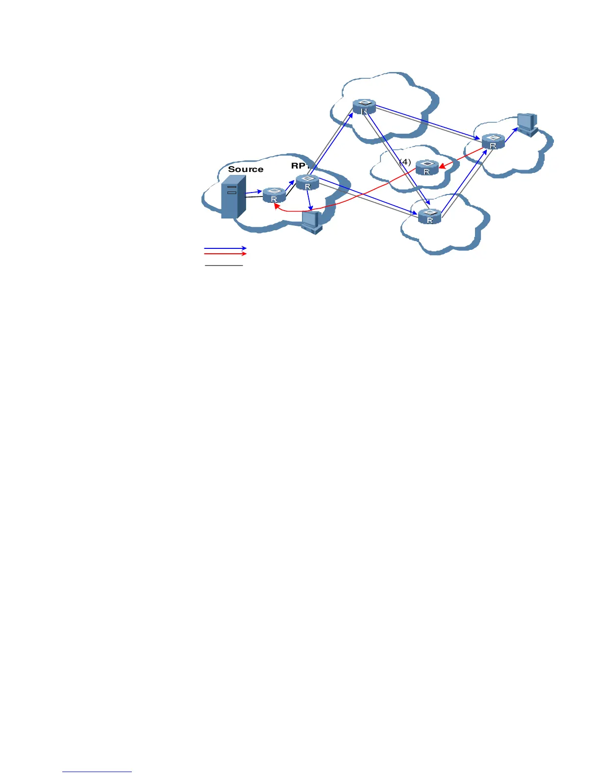 to receivers along the RPT. RP4 also sends a Join message to the multicast source S at