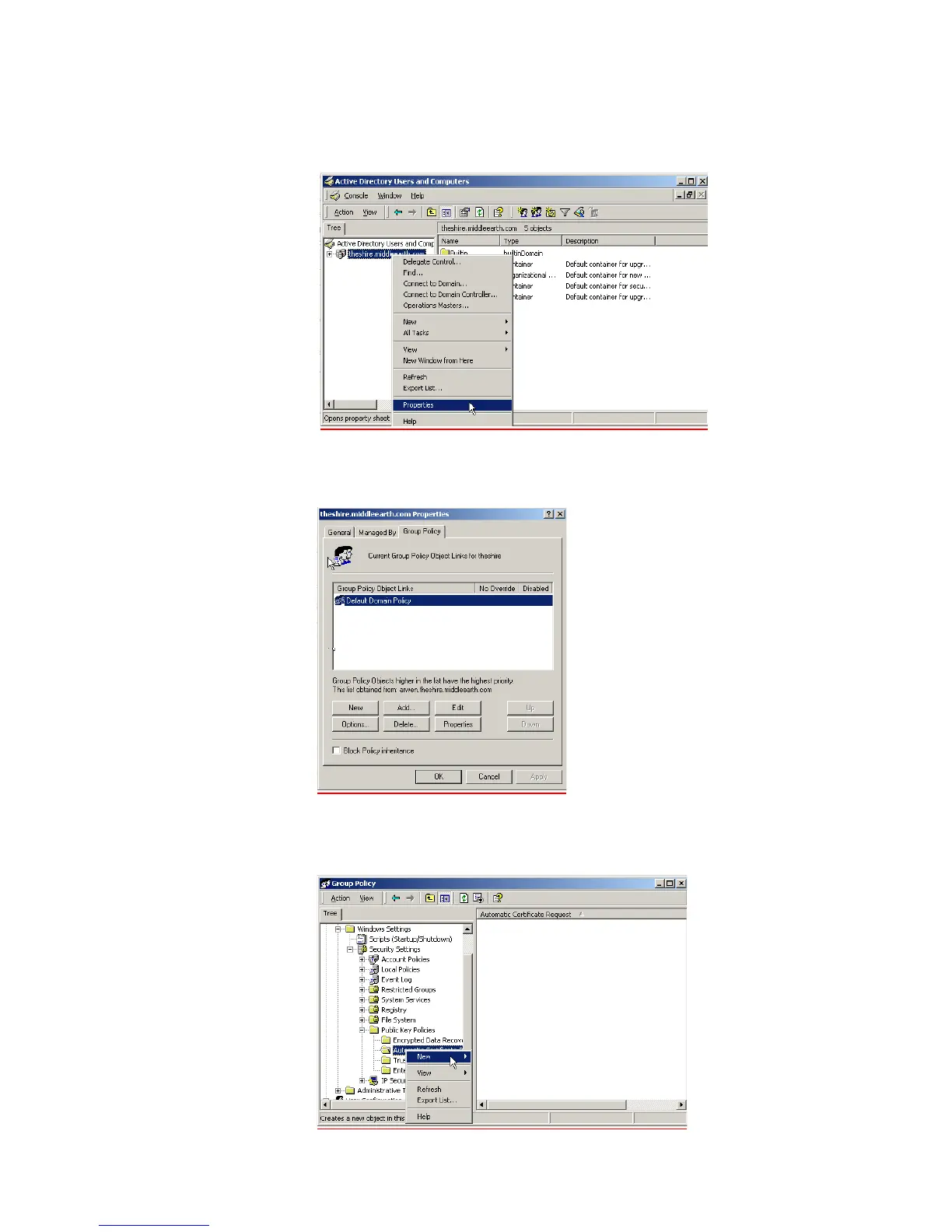 e Select the Group Policy tab, and ensure that the Default Domain Policy is