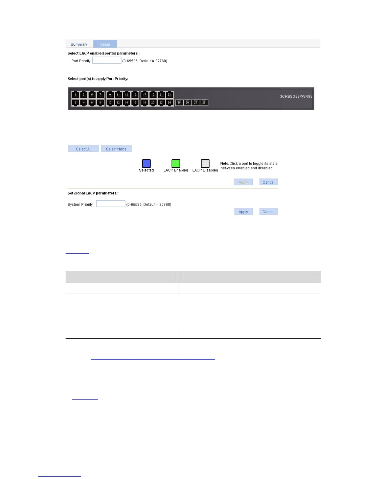 Select LACP enabled port(s) parameters Set a port LACP priority.