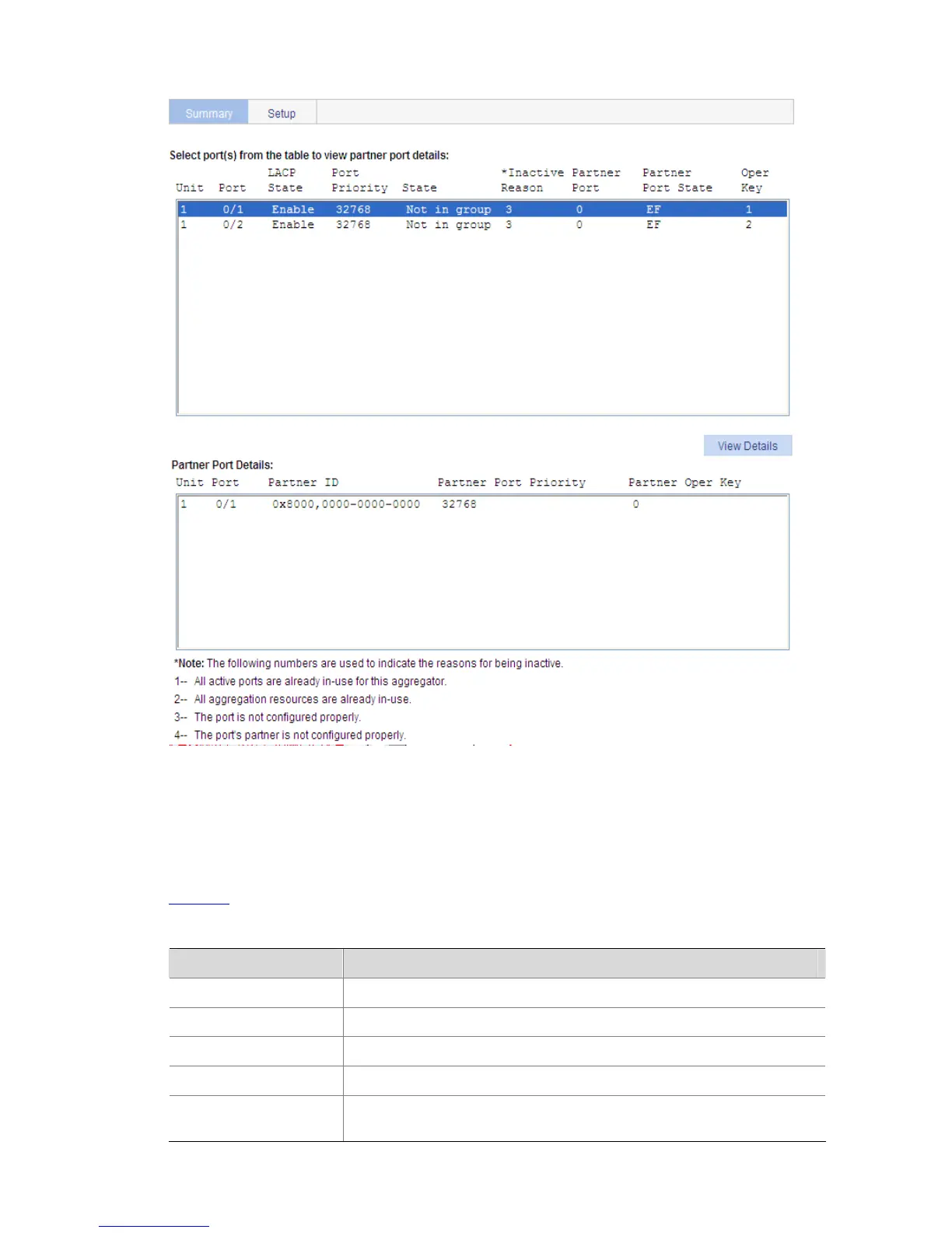 them. To view information about the partner port of a LACP-enabled port, select it in the port list, and