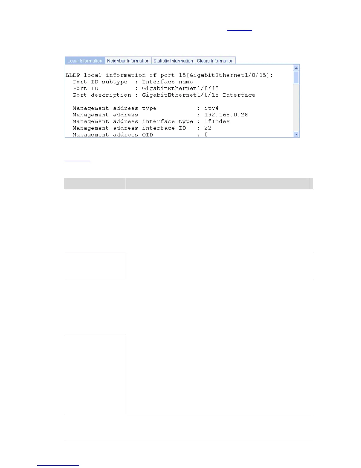 Table 1-10 Local information of an LLDP-enabled port