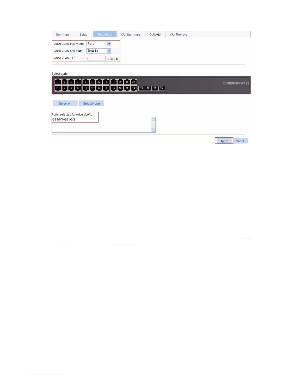 Figure 1-25 The page for configuring the voice VLAN function on ports