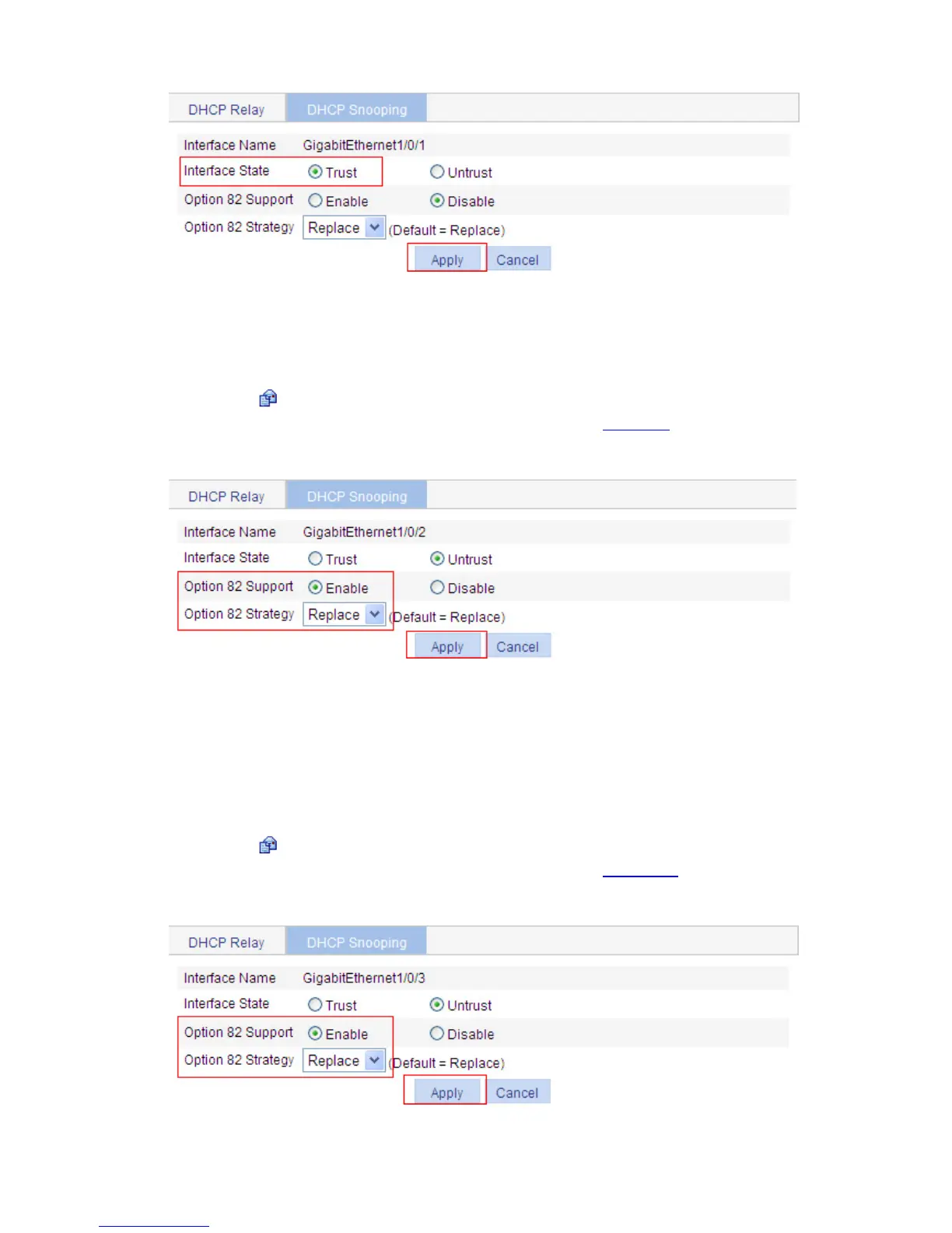 Figure 3-10 Configure DHCP snooping functions on GigabitEthernet 1/0/3