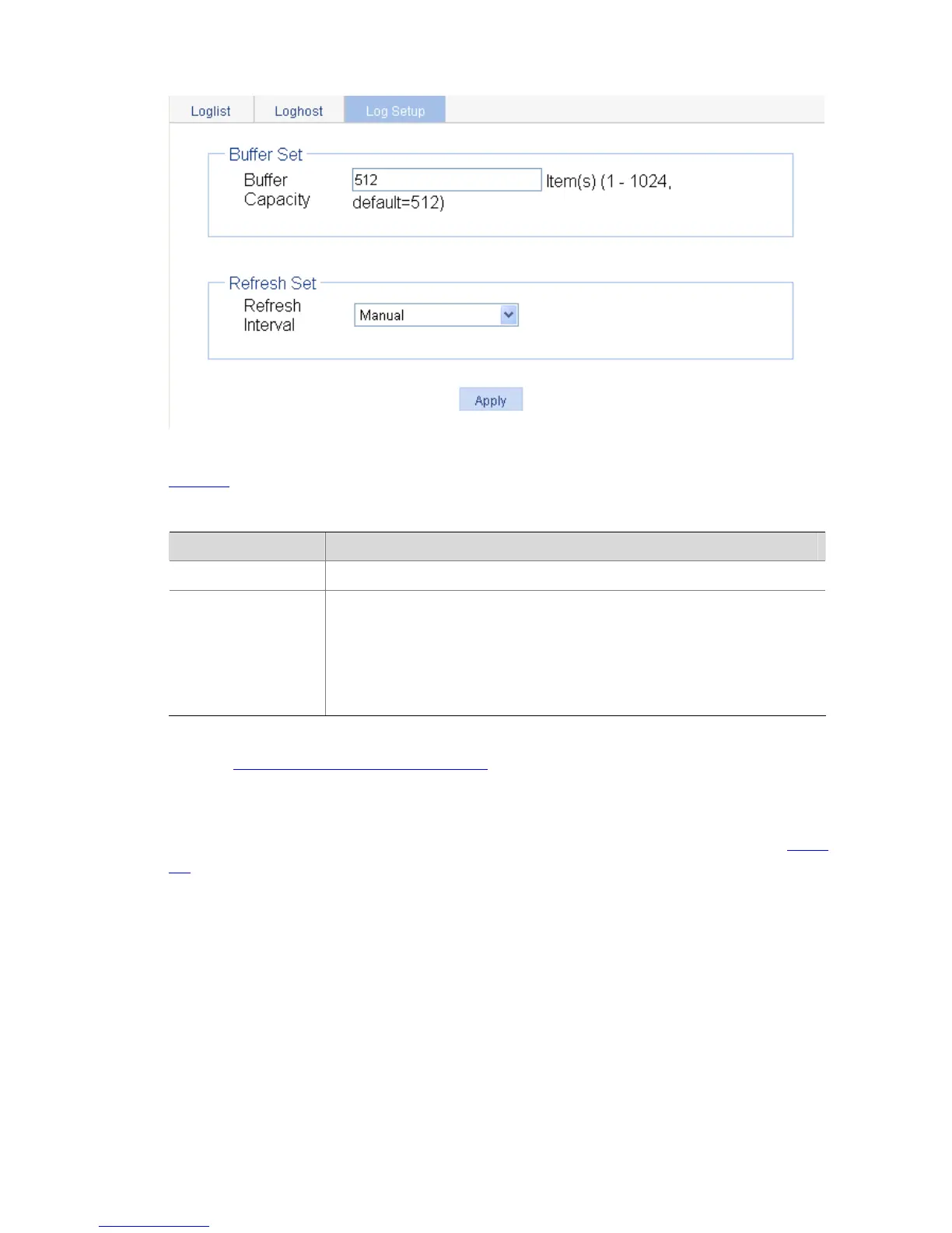 Set the refresh period on the log information displayed on the Web interface.