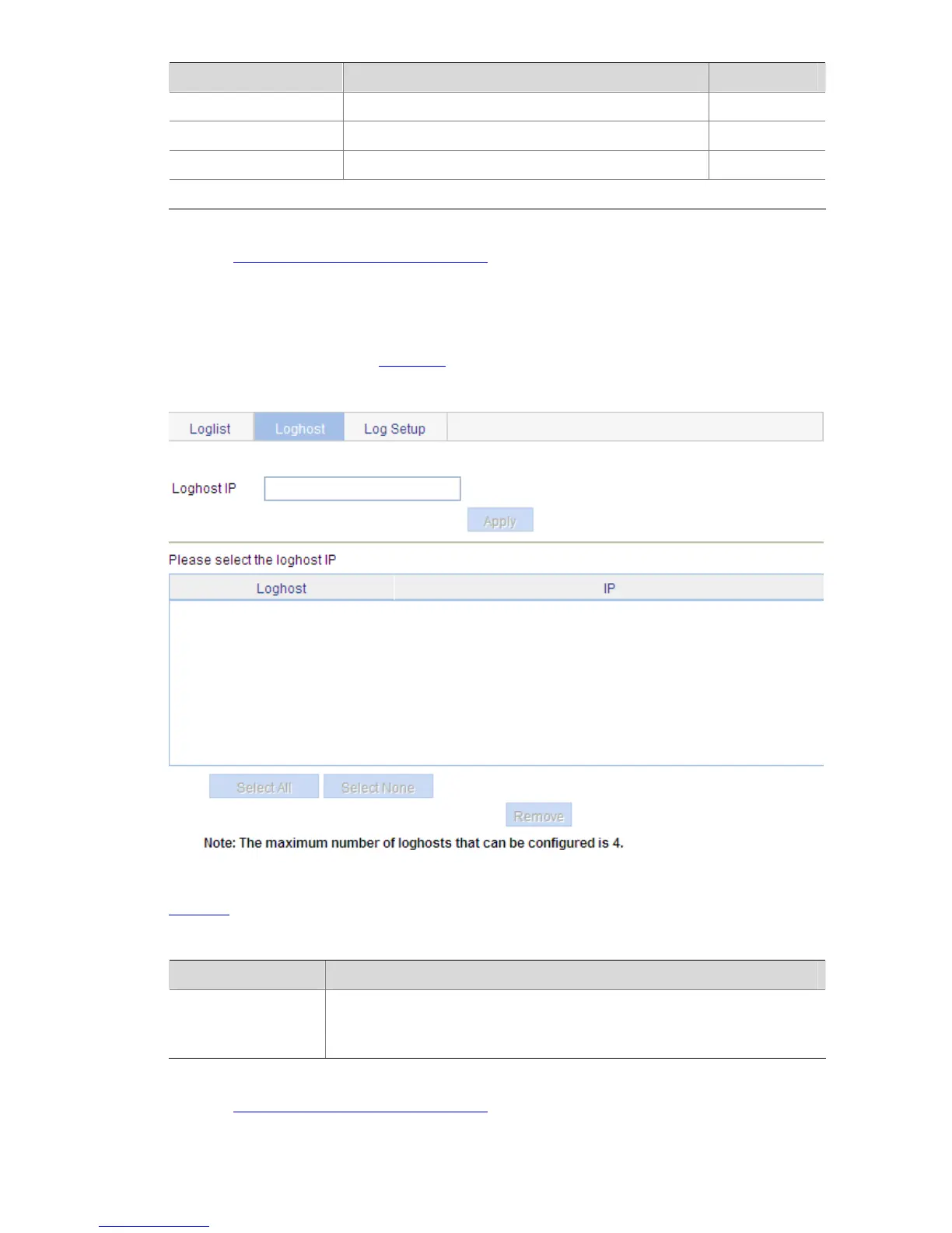 Select Device > Syslog from the navigation tree, and click the Loghost tab to enter the loghost