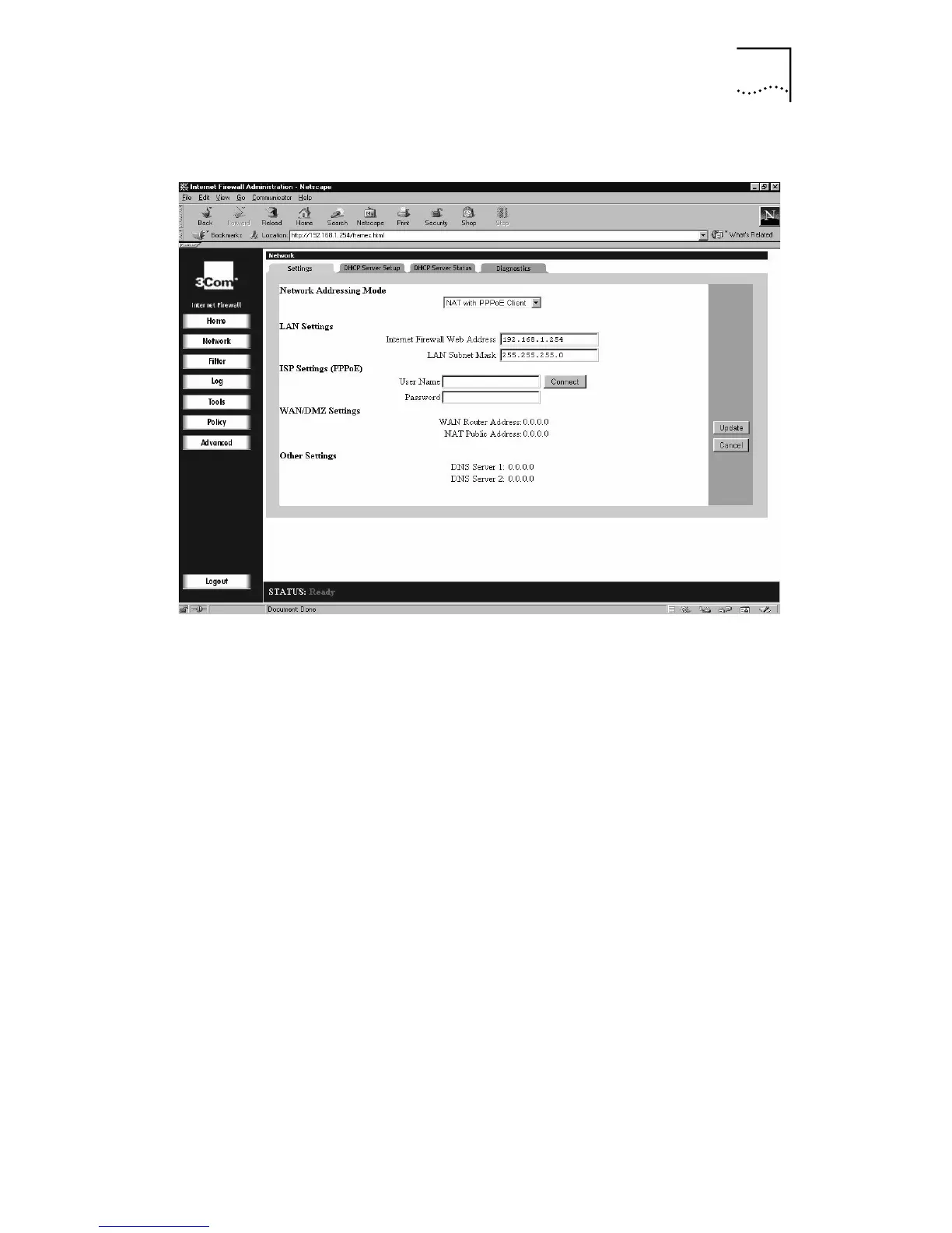 Network Settings Window, NAT with PPPoE Client