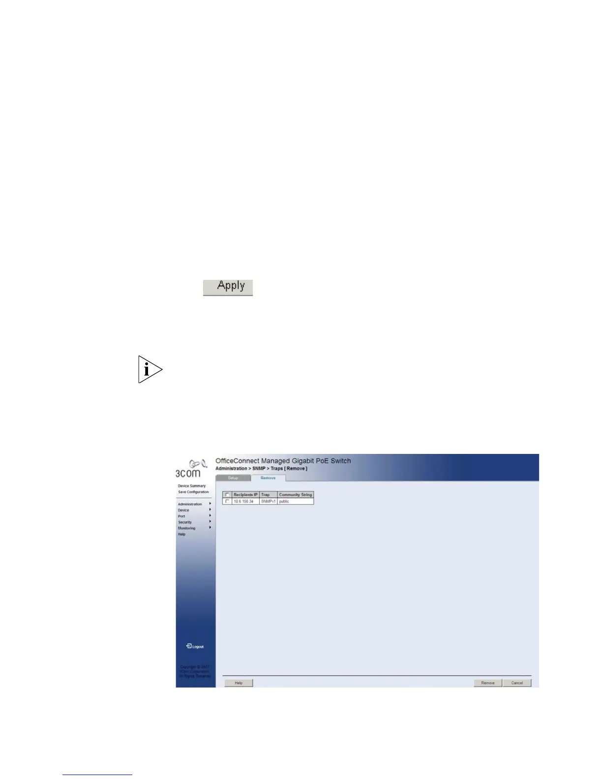1 Click Administration > SNMP > Traps > Remove. The SNMP Traps