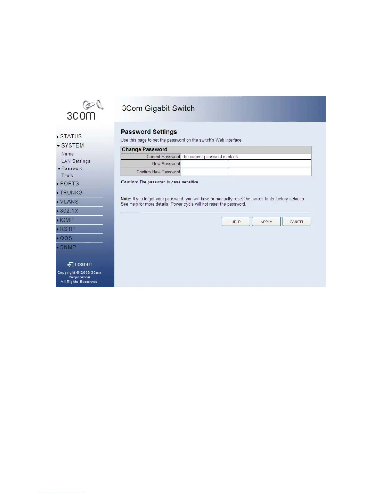 • APPLY - Updates the switch configuration. No changes are made to the configuration