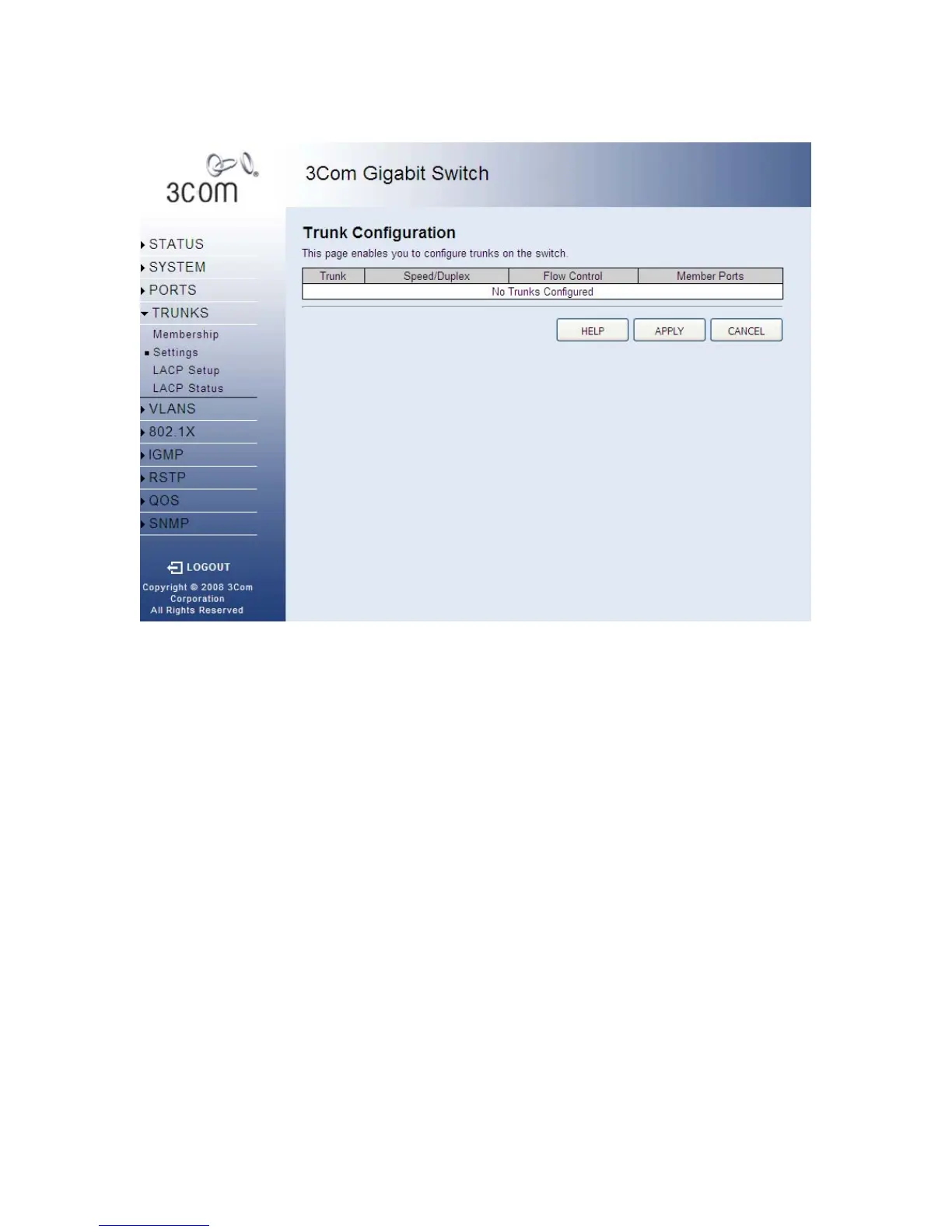 This page allows you to change the Speed, Duplex and Flow Control settings for each trunk on