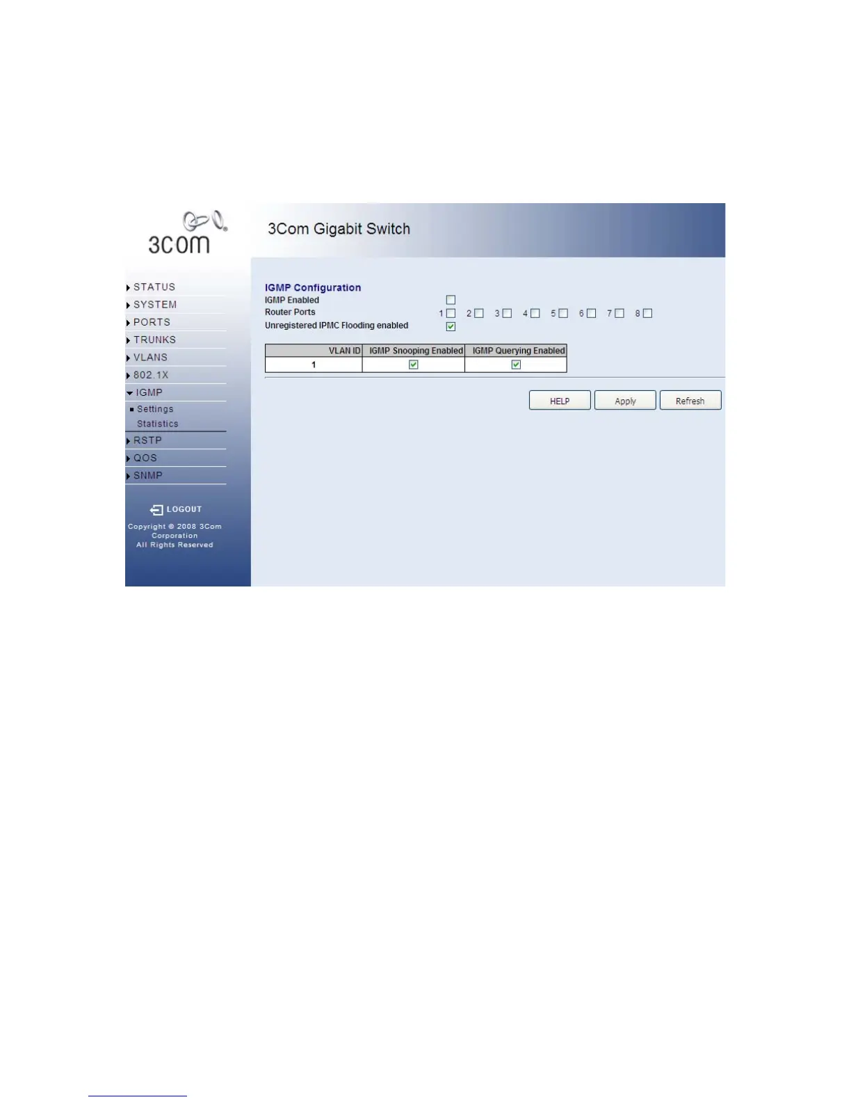 This page enables customers to setup the configuration of IGMPSNOOP. IGMPSNOOP monitors