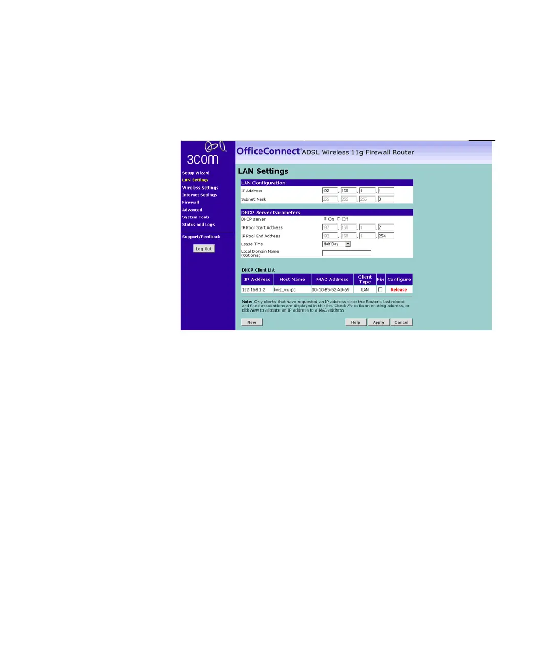 Lease Time drop down list. The lease time is the length of time the DHCP