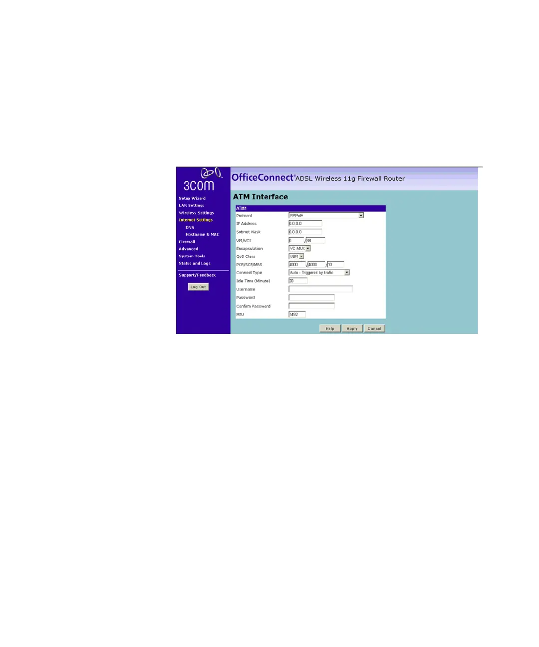 Figure 38 PPPoE Settings Screen