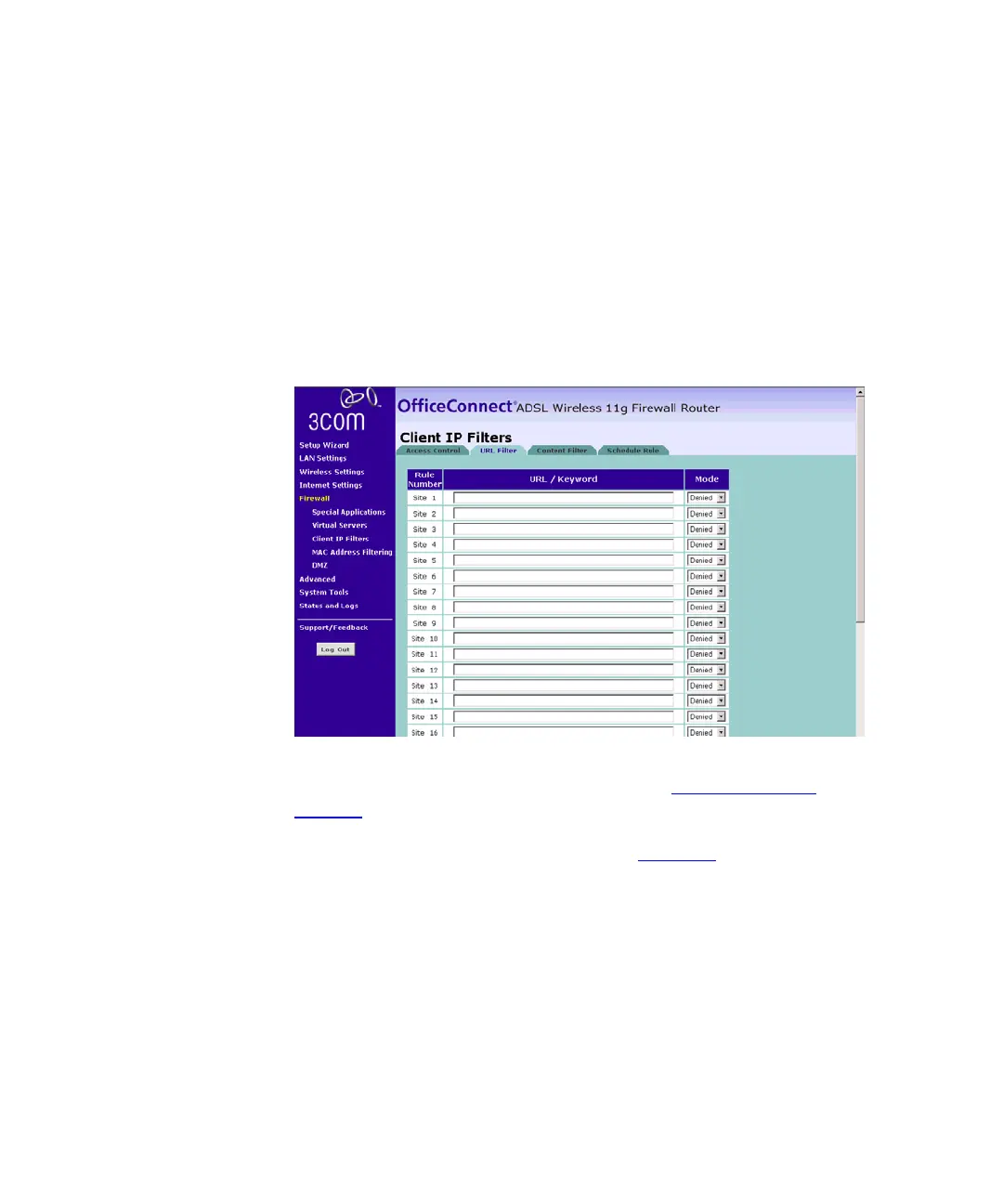 Enable URL Filter, and Enable Content Filter, to filter out the Web sites