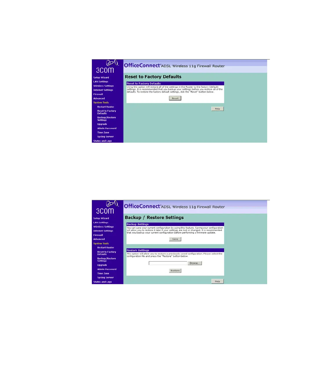 Using this option will reset all of the settings in the Router to the factory