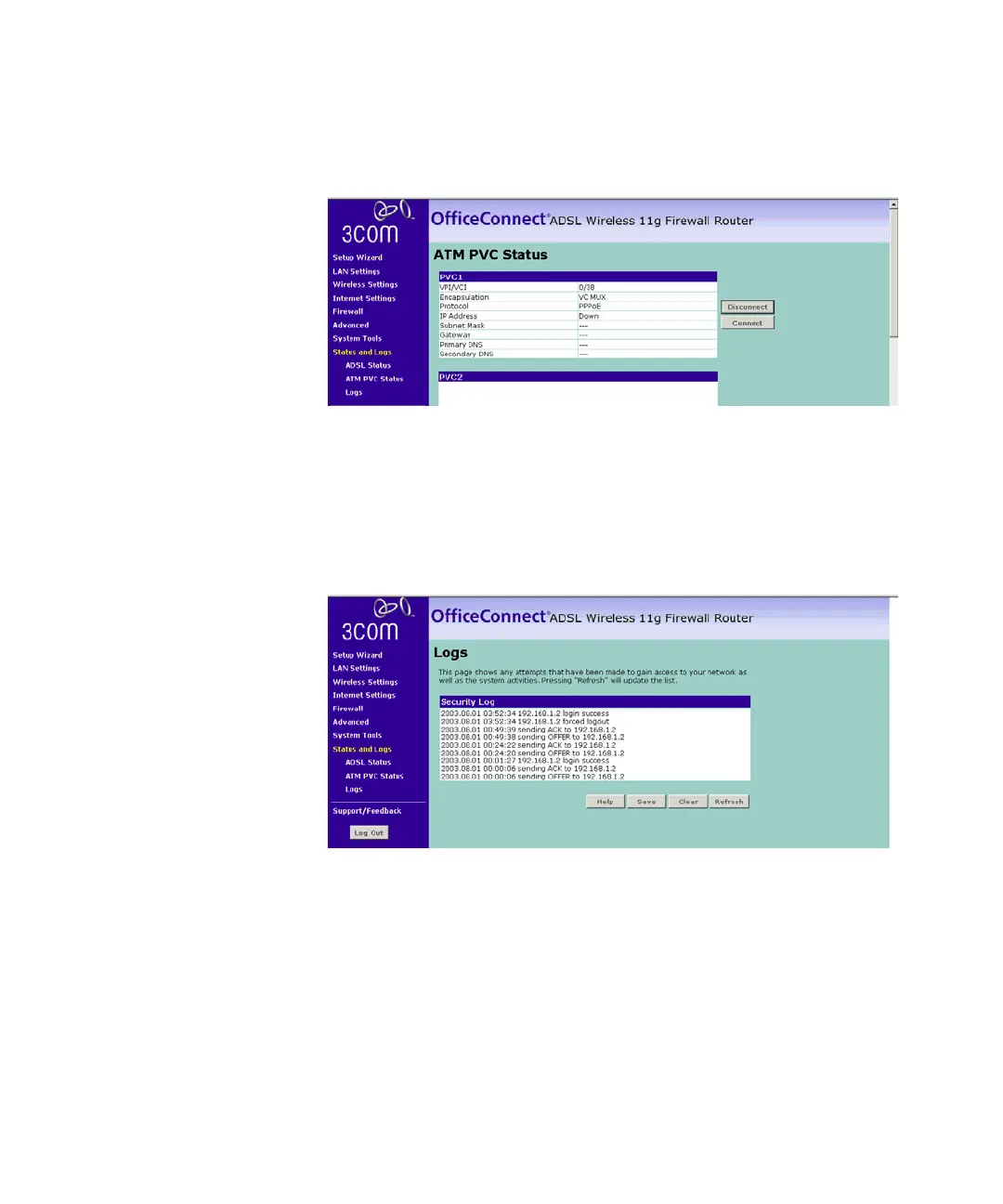 ATM PVC Status Figure 72 ATM PVC Status Screen
