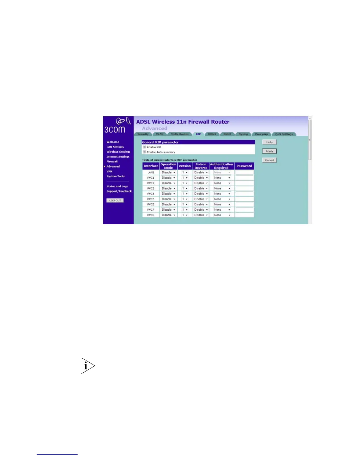 1 Check the Enable RIP checkbox.