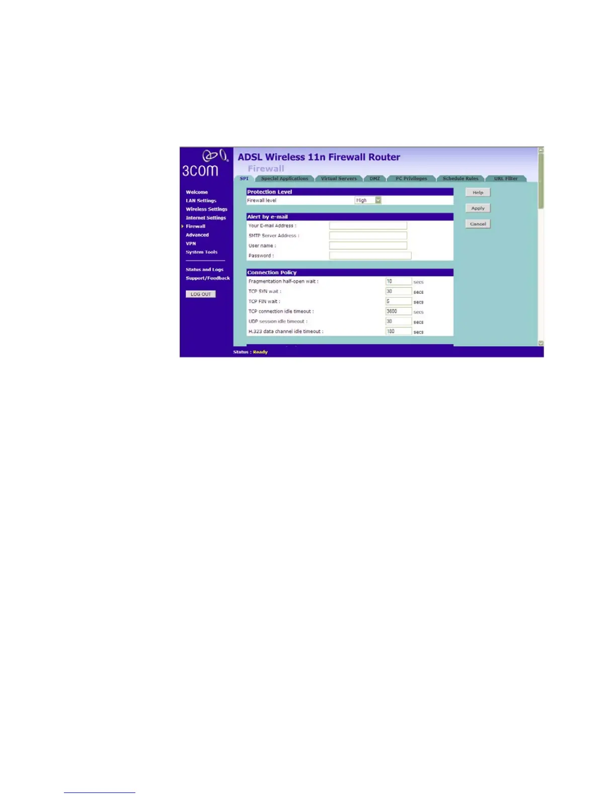Figure 70 High Level Firewall Protection Screen
