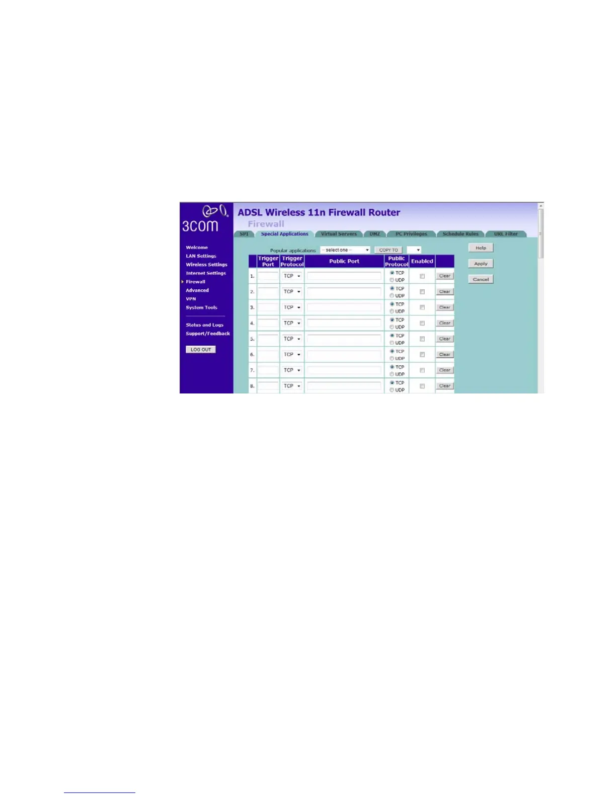 Special Applications Special Applications (port triggering) let you choose specific ports to be