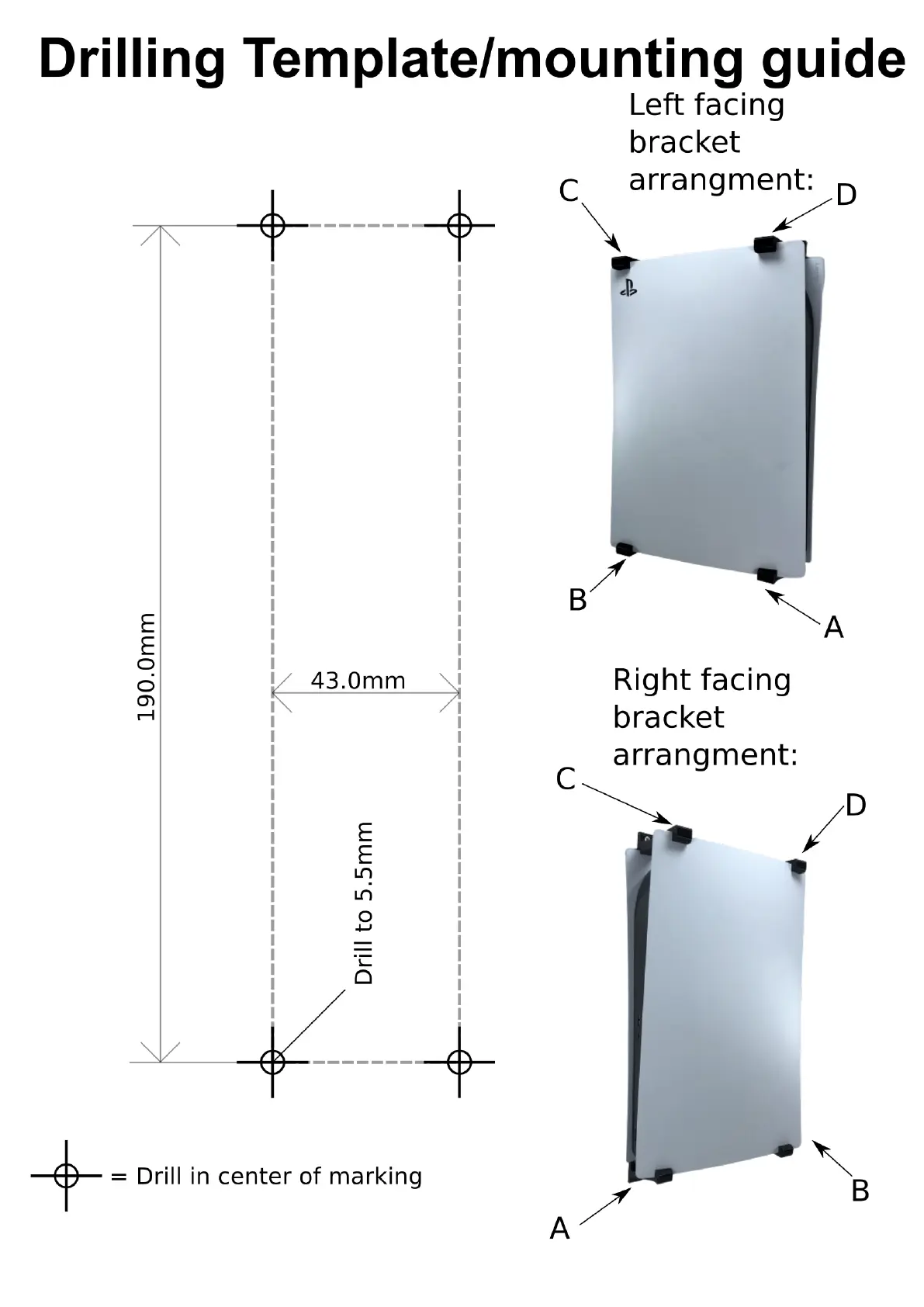 3d cabin PS5 - PS5 Wall Mount Mounting Guide; Drilling Template and Bracket Layout