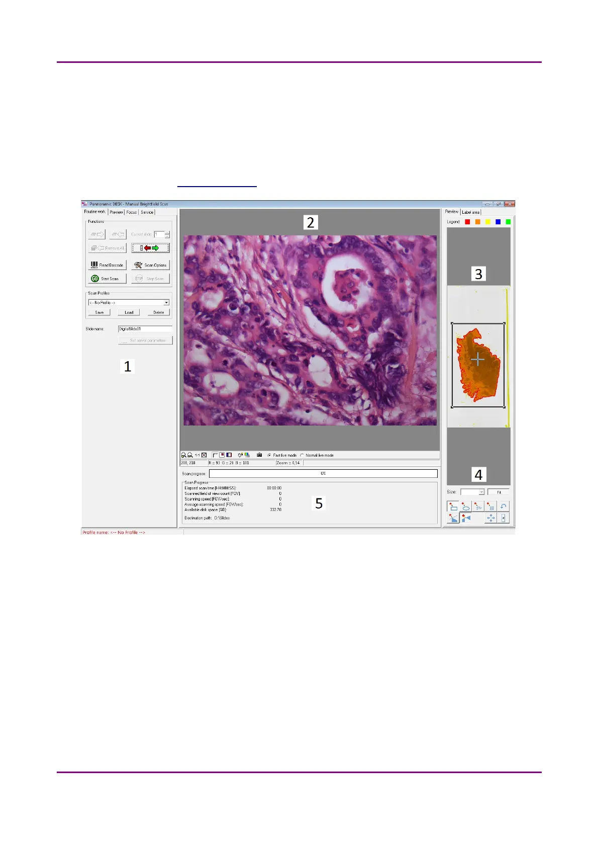 set profile settings here, and start scanning in Brightfield Manual mode. For more information on