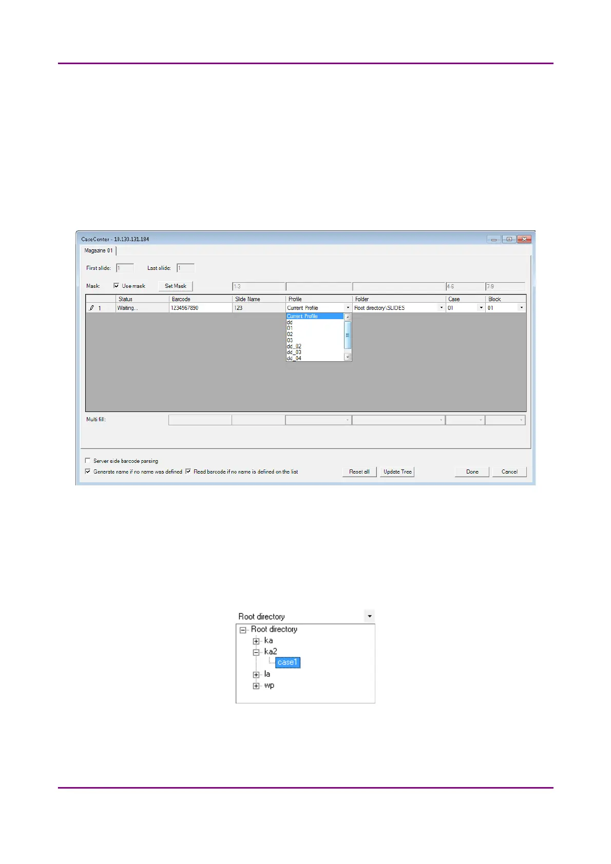 as slide name (123). Case and Block fields can be set this way as well, if necessary.