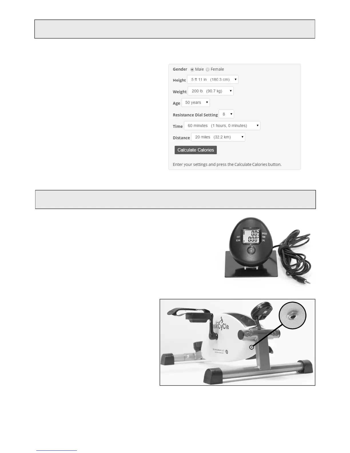 bike. The Calorie Calculator is located at www.deskcycle.com/CalorieCalculator.html .