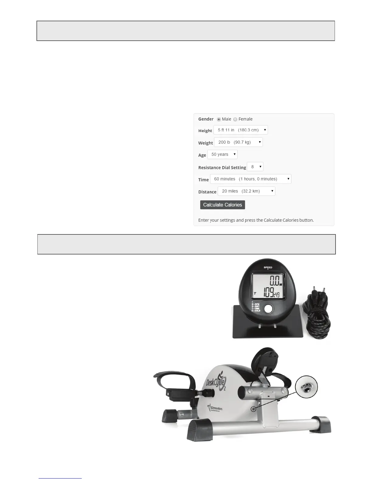 person using the bike. Without these, the Calorie estimate can be o by more than 100%.