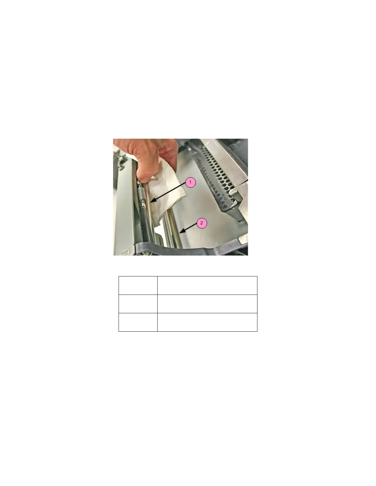 3. Using a paper towel dampened with distilled water, wipe the top and bottom Rails to remove any Core.