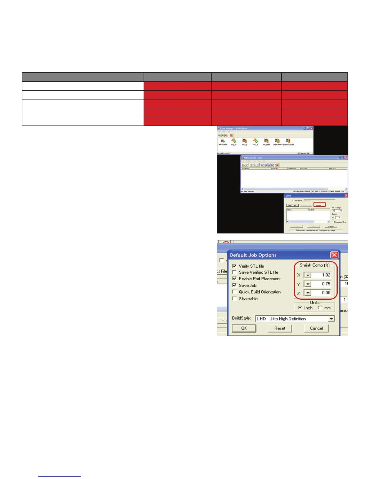 These shrink compensation values serve as general guidelines to setting shrink compensation. Part building and cleaning in a
