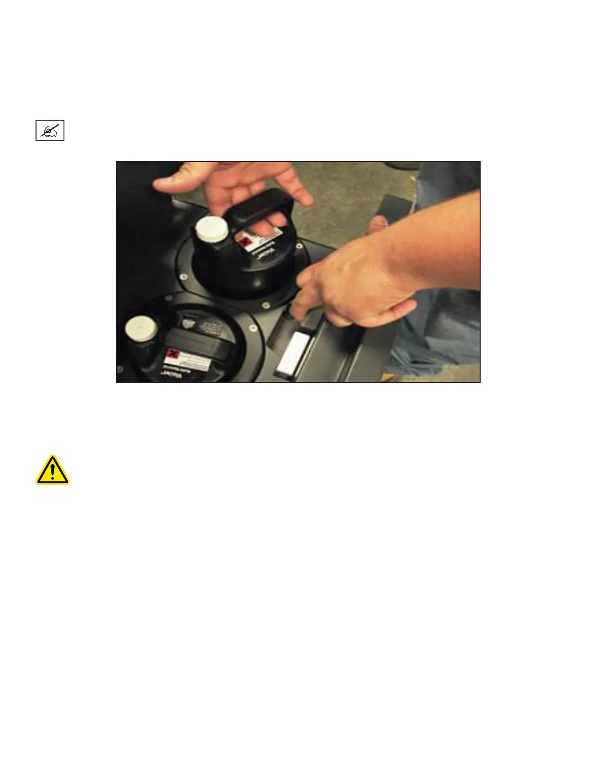 large pool of material is present (latch is submerged and walls of MDM are reached), do not place a clean material bottle into holder.