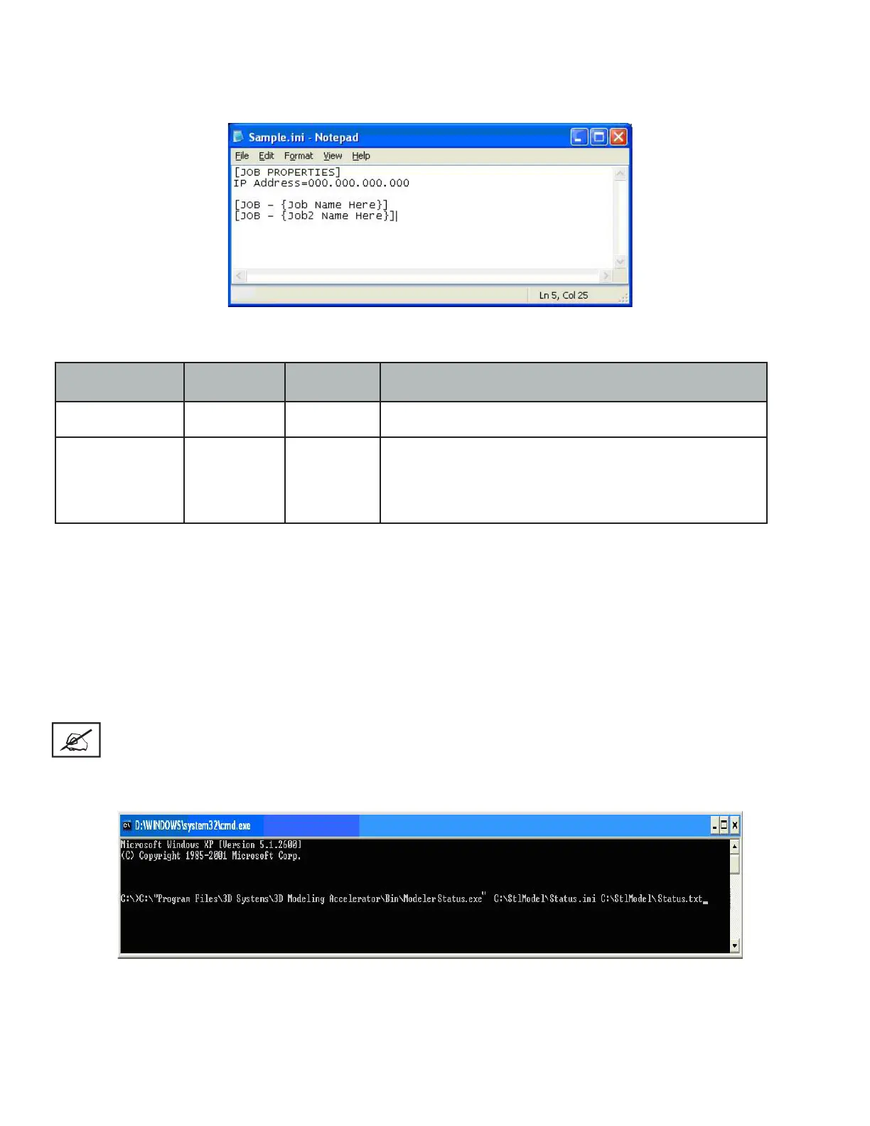 • Before running the ModelerStatus.exe, a text le must be created that species the desired machine. See example below.