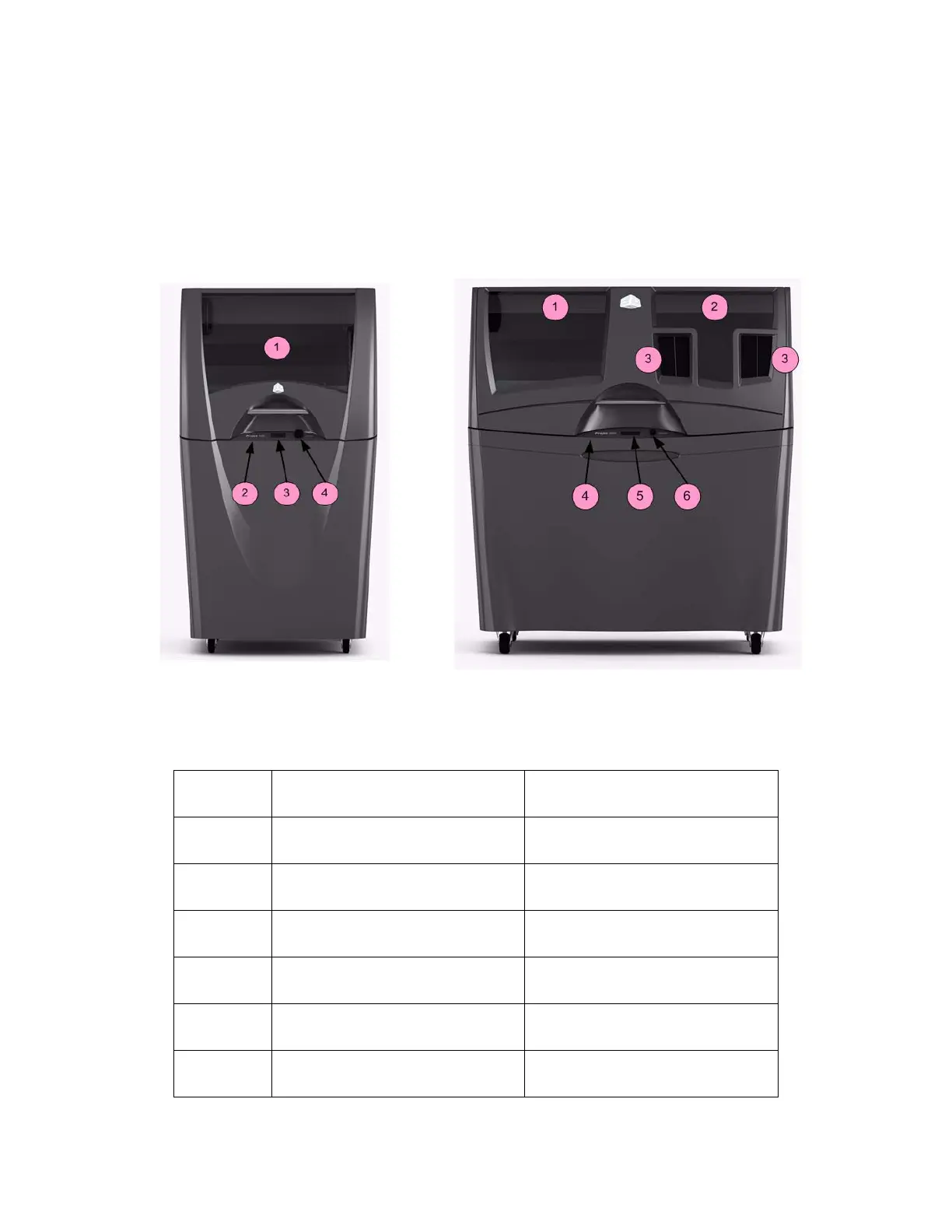 The main components of the ProJet x60 systems are highlighted below. Unless specified other wise, all