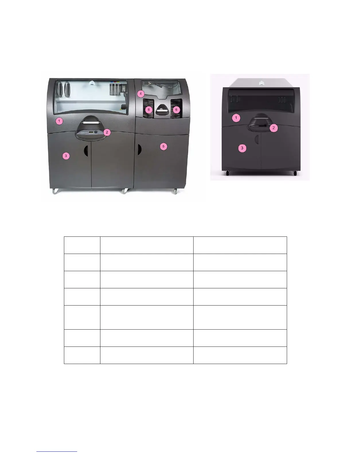 The main components of the ProJet x60Pro system are highlighted below.